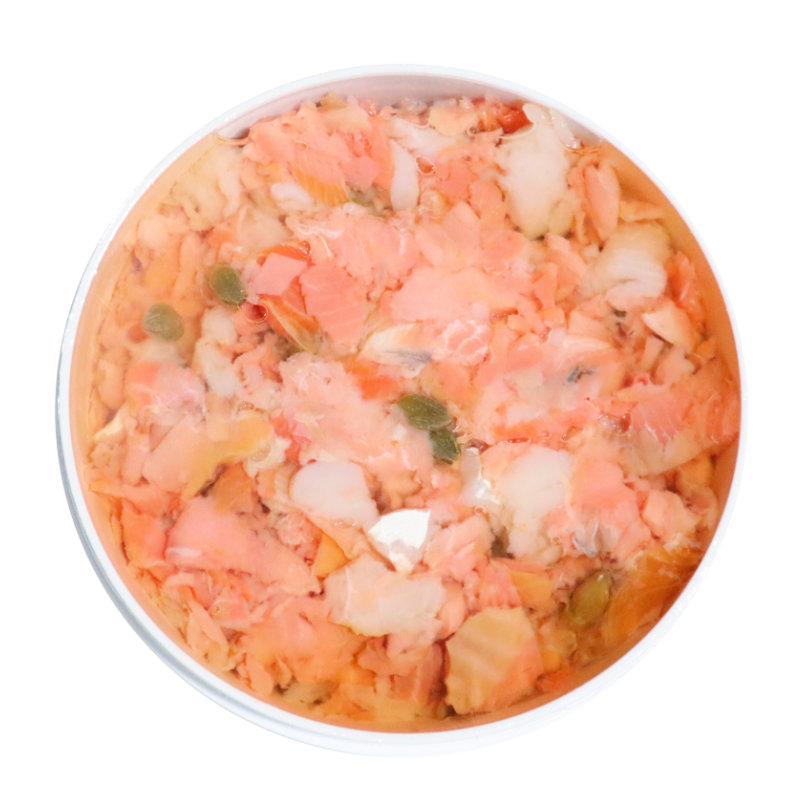 Excelente combinado de salmón, bacalao, alcaparras y aceite de girasol. Prepare su aperitivo de manera rápida, manteniendo su exquisito sabor. Envases de 700g, cada caja contiene 6 tarrinas.